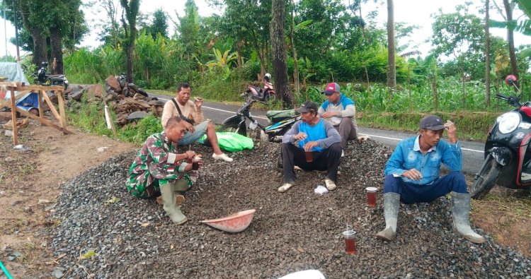 KUDUS – Dalam rangka mempererat silaturahmi dan menjalin kedekatan dengan warga binaan, Babinsa Desa Soco Koramil 07/Dawe Kodim 0722/Kudus Serda Indra Siswanto melaksanakan kegiatan komunikasi sosial (Komsos) dengan warga setempat. Komsos dilakukan saat para tukang bangunan beristirahat di sela kegiatan pembangunan rumah di Desa Soco Kecamatan Dawe Kabupaten Kudus. Rabu (07/01).